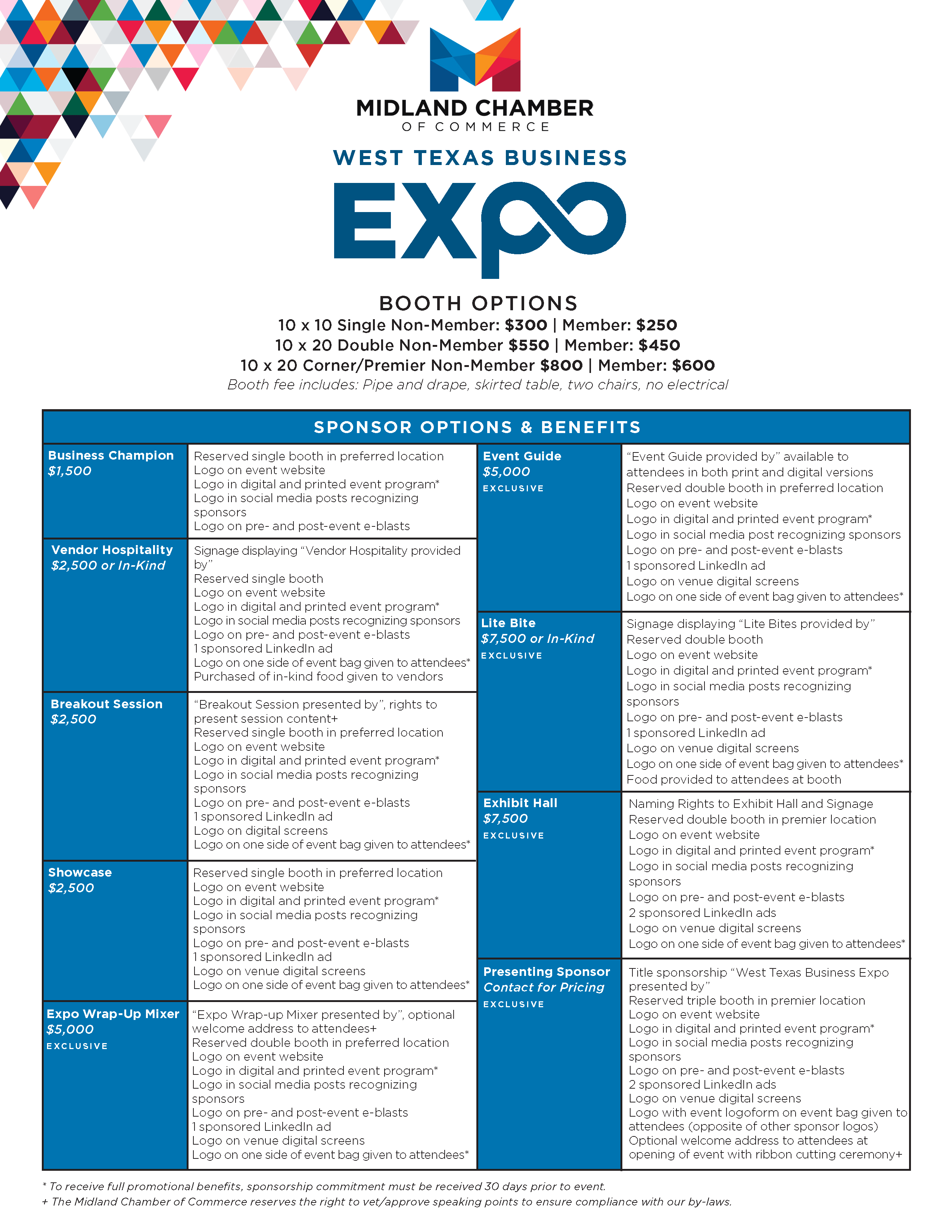 Reserve your exhibitor booth today and show your support for local business by becoming a sponsor! Questions? Contact our Director of Events, Sarah Tankersley at sarah@midland.biz.